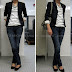 beautiful blazer!! i love the fact that it's very slim fitting and hits just at the hips. great casual look but the blazer makes it look so very put together!